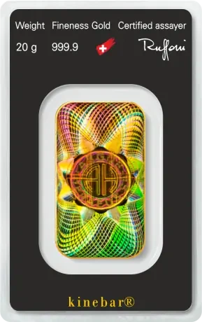 To sztabka złota z holograficznym zabezpieczeniem Kinegram na rewersie. Zmienia wygląd pod wpływem światła i nadaje produktowi unikalny charakter.