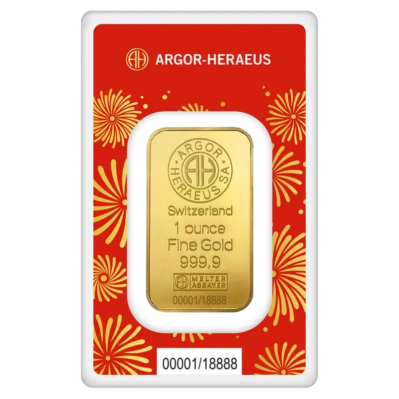 - Sztabka złota Rok Węża 1 uncja Argor-Heraeus. Rok wydania 2025.