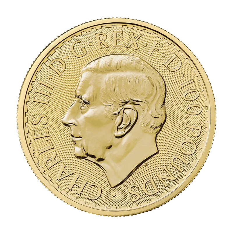 Złota moneta Britannia o masie 1 uncji trojańskiej (31,1 g) i próbie 999,9 to oficjalna moneta bulionowa emitowana przez brytyjską Royal Mint. Po raz pierwszy trafiła do obiegu w 1987 roku. Wersja z wizerunkiem Króla Karola III to aktualna edycja tej cenionej serii. Dzięki najwyższej czystości złota i rozpoznawalnemu projektowi, moneta cieszy się trwałym uznaniem wśród kolekcjonerów i nabywców metali szlachetnych.