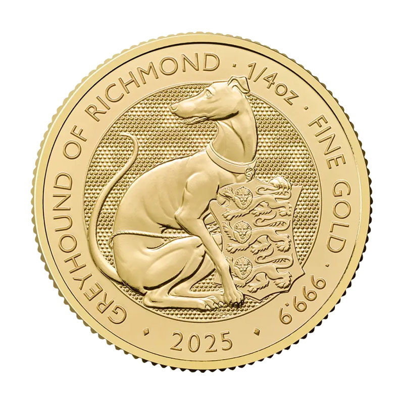 • Moneta 1/4 uncji złota Chart z Richmond z serii Bestie Tudorów. Moneta została wydana przez mennicę The Royal Mint w roku 2025.