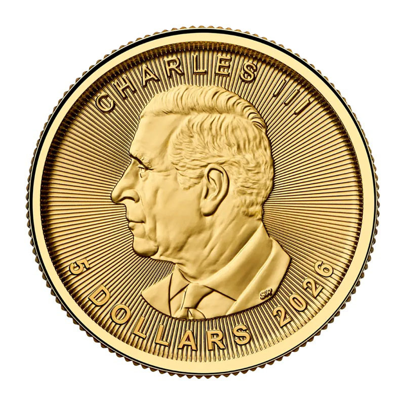 - Złota Moneta Kanadyjski Liść Klonowy 1/10 uncji. Rok bicia monety - 2026.